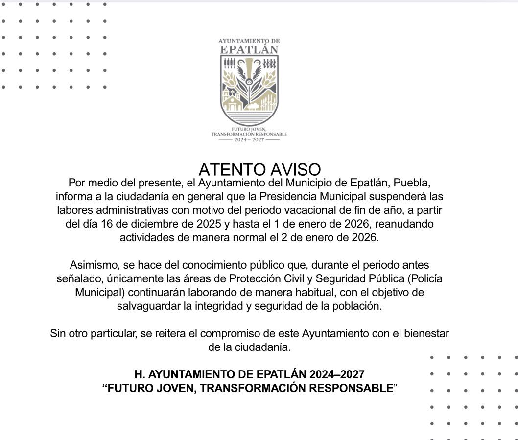 *Gobierno de Puebla emite recomendaciones por Frente Frío No. 36CIUDAD DE PUEBLA, Pue.- El Gobierno de Puebla, a través de la Coordinación General de Protección Civil y G...... |
