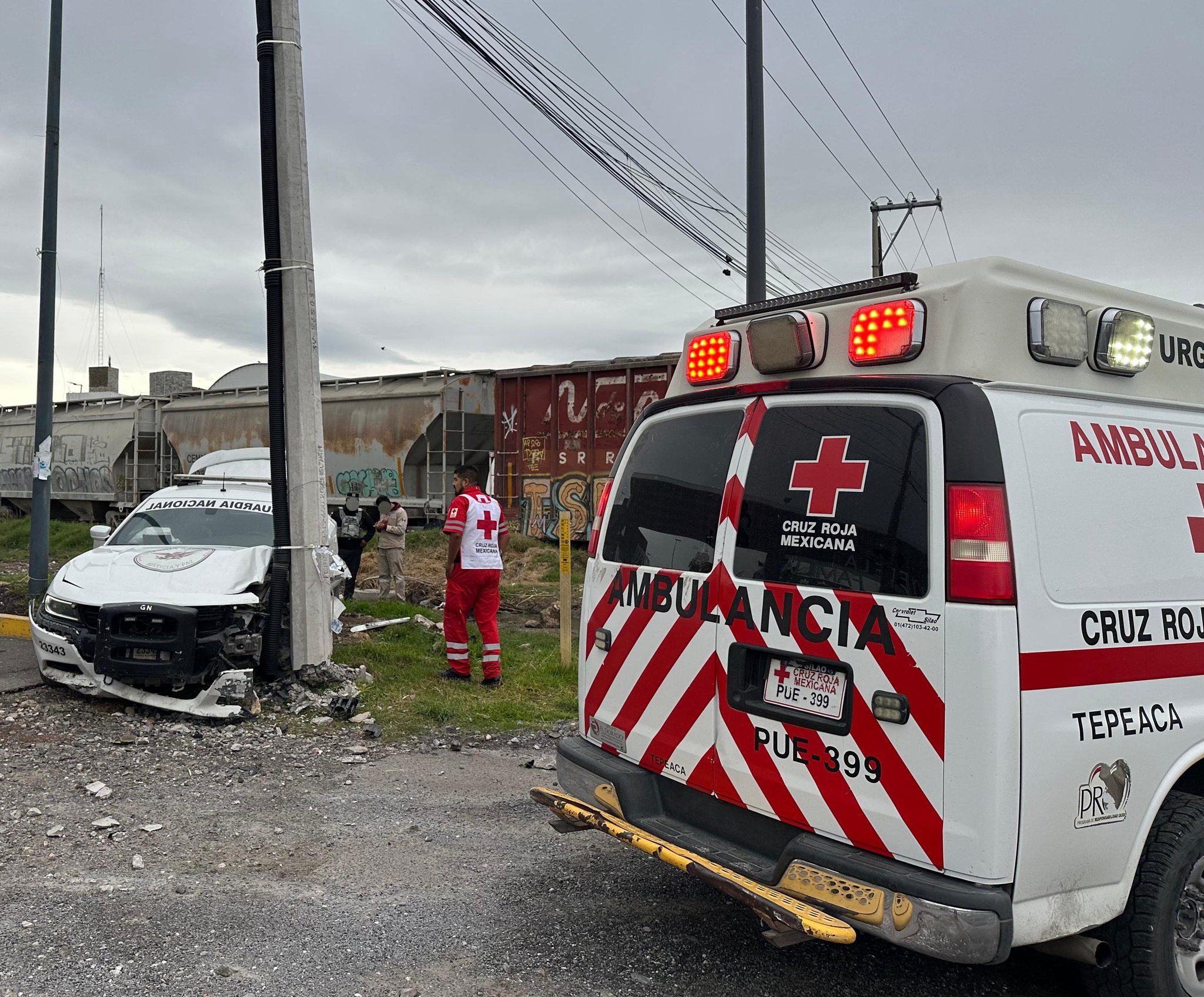 Un elemento de la Guardia Nacional División Carreteras resultó lesionado la mañana de este miércoles en un aparatoso accidente ocurrido en el municipio de Tepeaca, luego de que intentara ganarle el paso al tren. La patrulla fue impactada por el tren y proyectada contra un poste de concreto de la CFE.