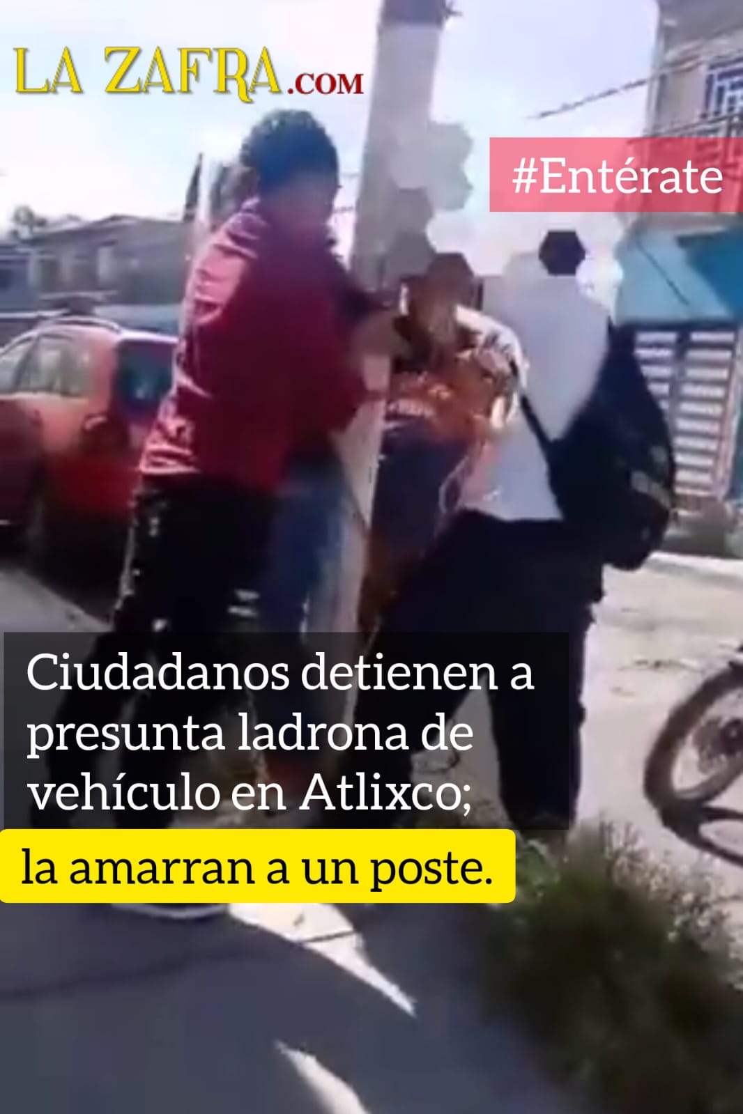 Una mujer fue inmovilizada y dejada atada a un poste por residentes de la colonia Los Ángeles, en Atlixco, tras ser señalada de intentar sustraer una camioneta la tarde de este martes.