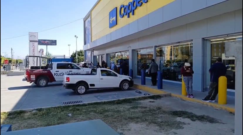 Todo ocurrió alrededor de las 12:10 a 12:30 horas de este 24 de noviembre, en la sucursal ubicada sobre la calzada Adolfo López Mateos, en la colonia Reforma. De acuerdo con la información inicial, el sujeto—vestido con pantalón de mezclilla azul, sudadera de manga larga y una cangurera al frente—se formó en la línea de cajas simulando querer pagar un “abono”.