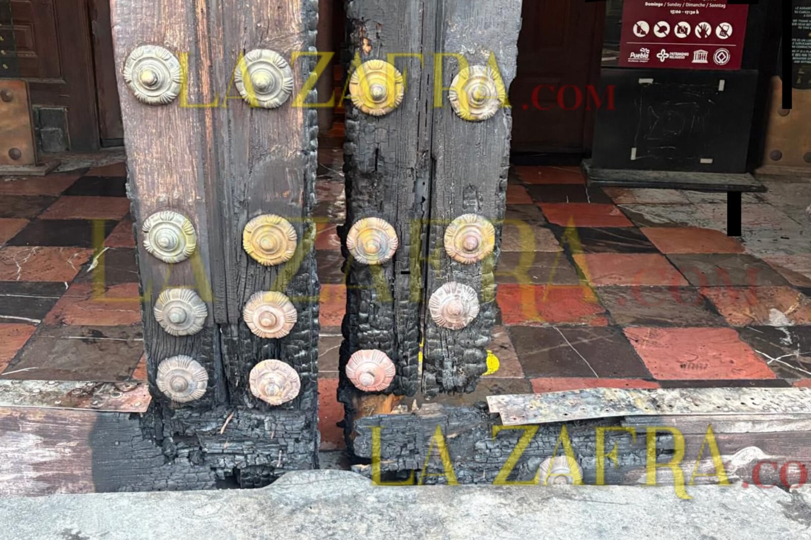 Un acto vandálico que atentó contra el patrimonio cultural generó indignación en la capital poblana. En la madrugada del sábado, poco después de las 5:00 horas, se provocó un incendio intencional en una de las puertas de la Catedral de Puebla, específicamente en el acceso ubicado del lado del Zócalo, sobre la calle 3 Oriente.