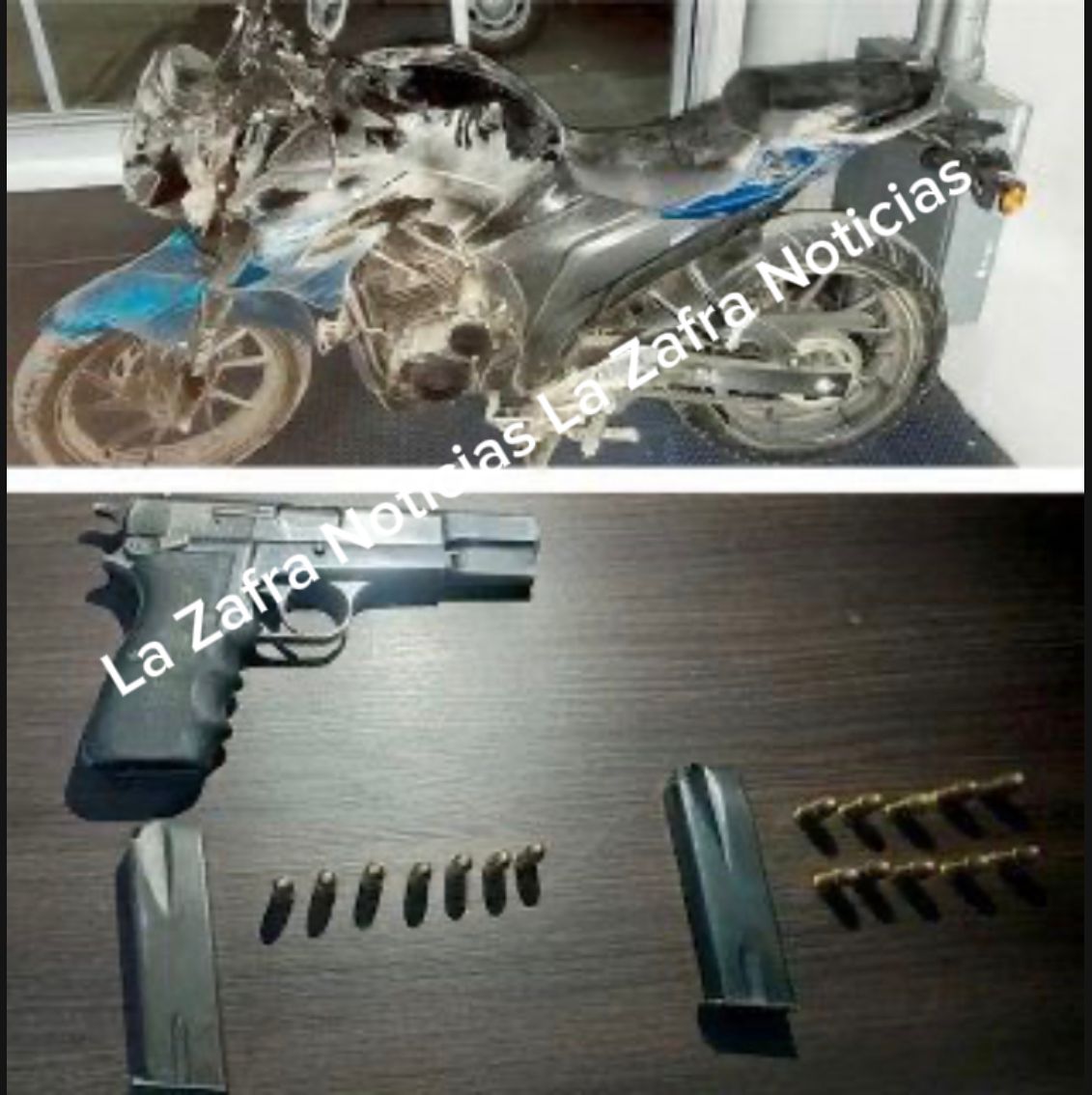 Durante esta acción, la Policía Estatal Preventiva aseguró 10 cartuchos útiles calibre 9 milímetros y una motocicleta de color azul con negro, sin placas de circulación.