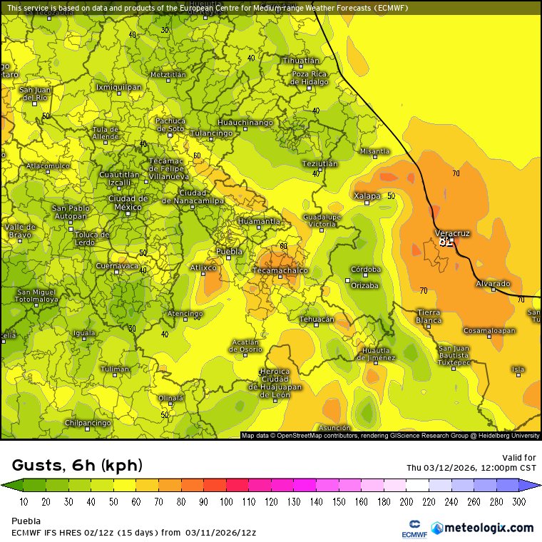 De acuerdo con el informe meteorológico, en gran parte de la entidad poblanas se registrarán ráfagas consideradas como fuertes a muy fuertes, con velocidades que oscilarán entre los 40 y 60 kilómetros por hora. Sin embargo, en las regiones mencionadas, los acumulados podrían superar los 70 kilómetros por hora, por lo que se pide a la población tomar las debidas precauciones para evitar incidentes.