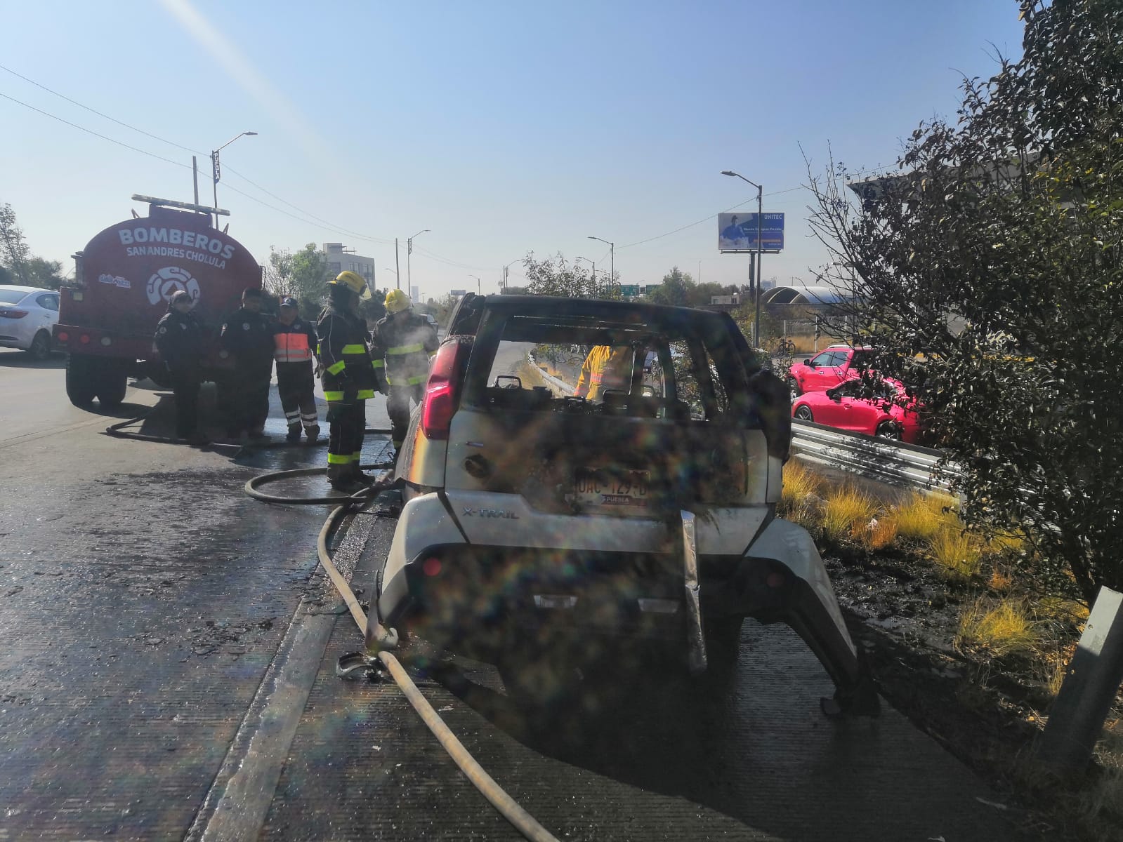 Al lugar acudieron bomberos y personal de Protección Civil, quienes aplicaron los protocolos correspondientes hasta lograr sofocar el incendio, aunque la camioneta, una Nissan X-Trail modelo 2008, resultó severamente dañada, prácticamente calcinada en la mayor parte de su estructura.