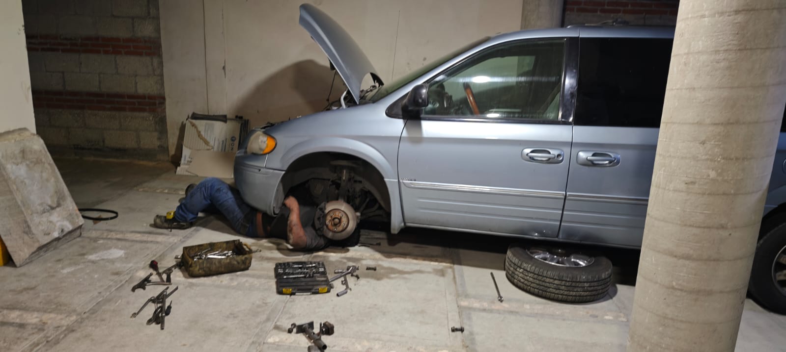 De acuerdo con los reportes policiales, el percance ocurrió dentro de un domicilio particular donde el hoy occiso realizaba labores mecánicas a una camioneta Chrysler Town & Country modelo 2006, de color azul, la cual había sido llevada para reparación.