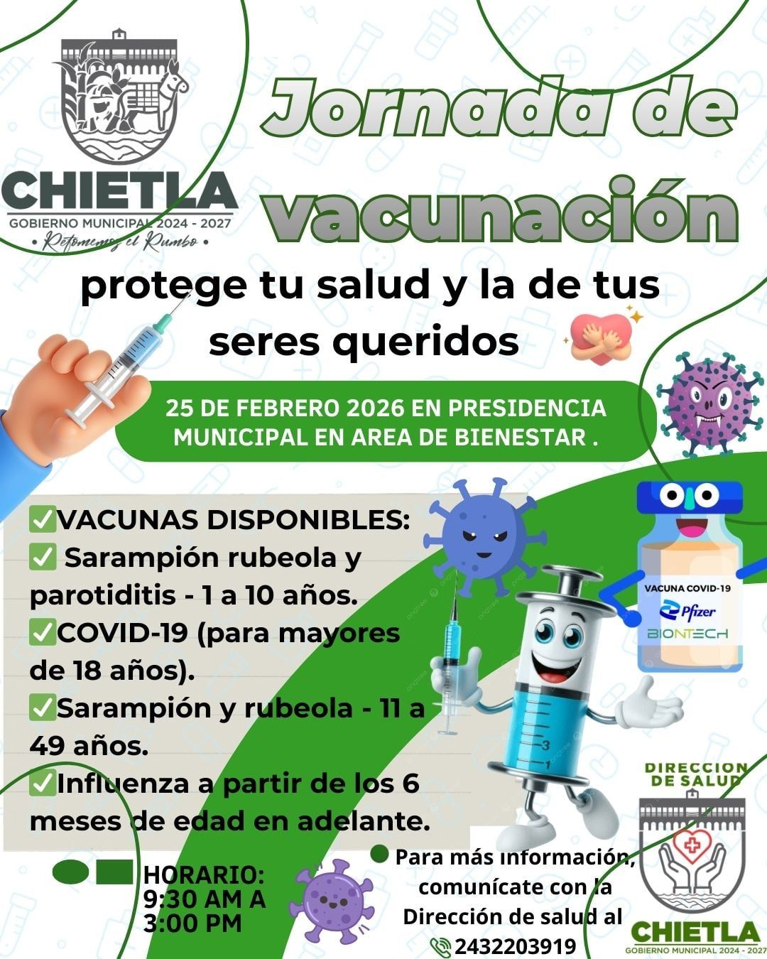 ¡GRAN JORNADA DE VACUNACIÓN EN Chietla! El H. Ayuntamiento de Chietla, que preside el C.P. Edgardo Ponce Cortés, en coordinación con el Instituto Mexicano del .....