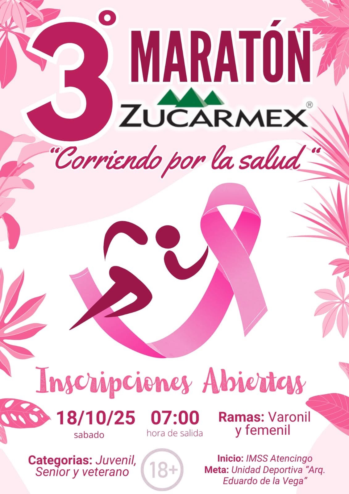 Zucarmex te invita al 3er Maratón “Corriendo por la Salud” ¡Súmate a este gran evento deportivo para toda la comunidad de Chietla!Fecha: Sábado 18 de octubre d.....