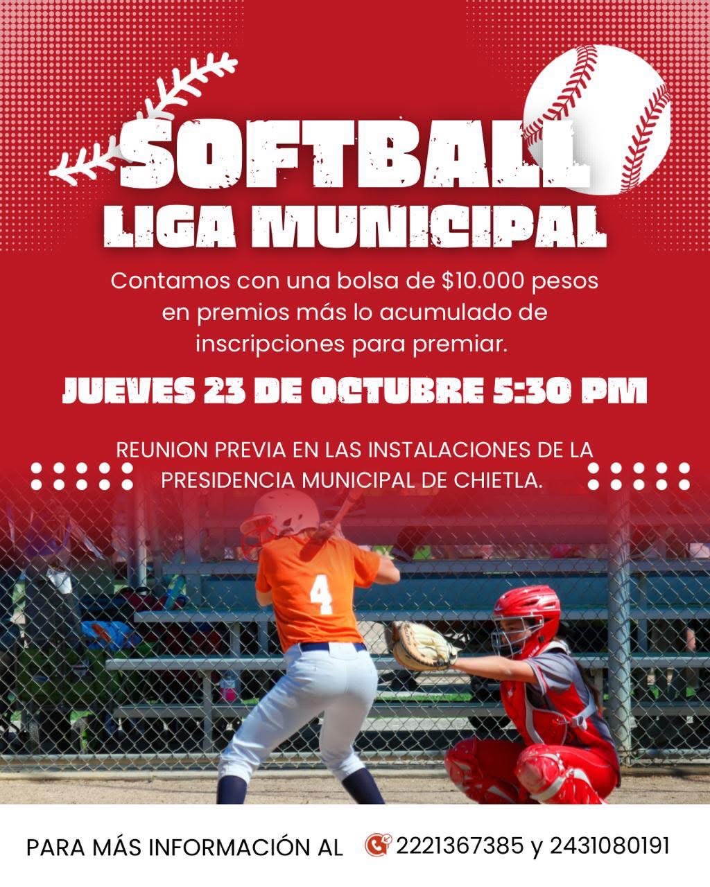 ¡Arranca la Liga Municipal de Sóftbol en Chietla! El H. Ayuntamiento de Chietla, presidido por el C.P. Edgardo Ponce Cortés, y la Dirección de Deportes te invi.....