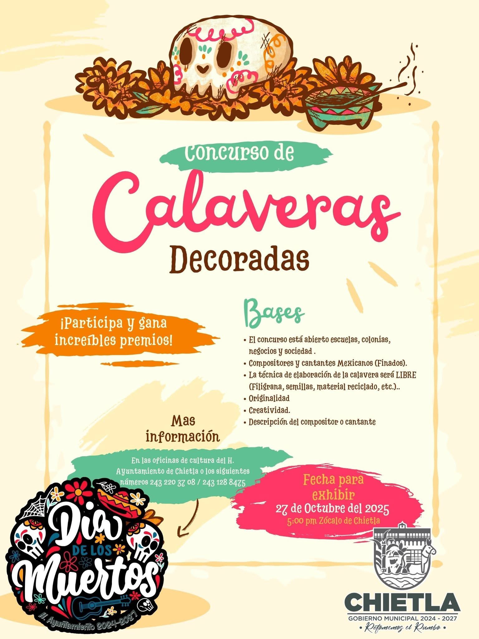 Invita Gobierno Chietla a participar en el Concurso de Calaveras Decoradas!