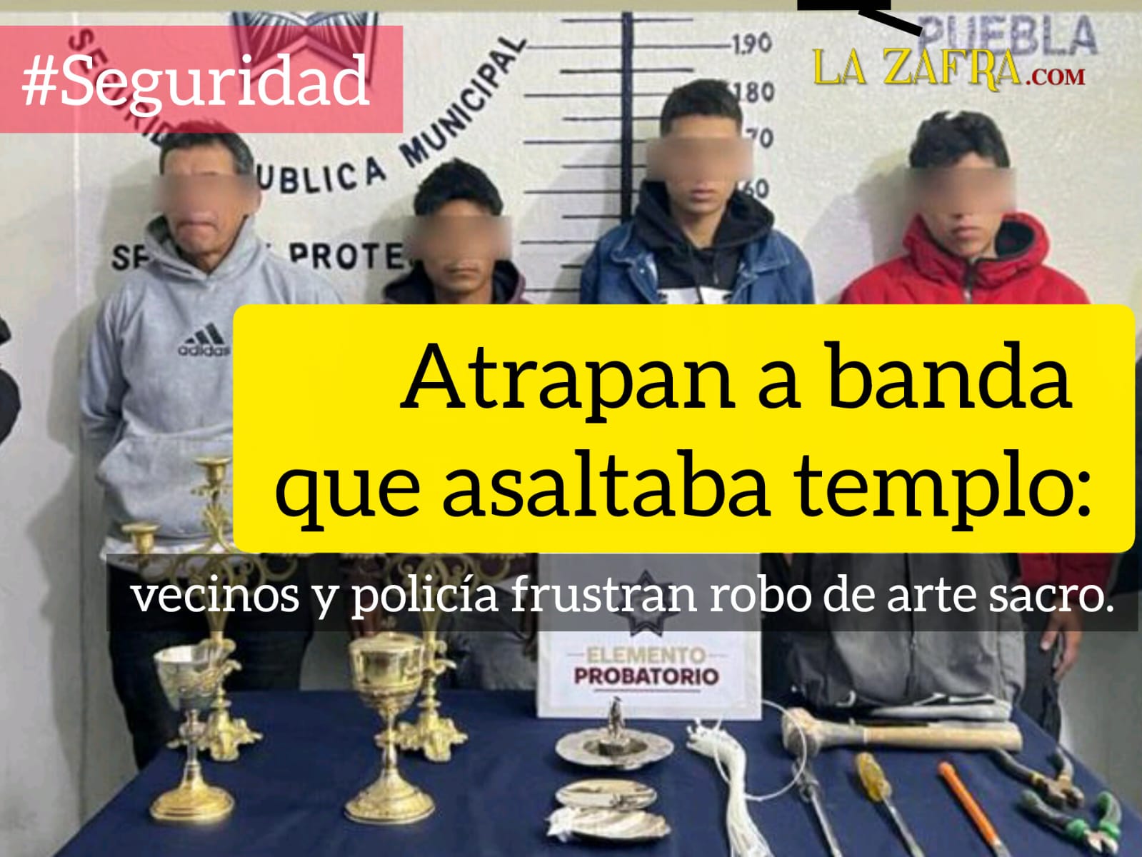 Atrapan a banda que asaltaba templo: vecinos y policía frustran robo de arte sacro.