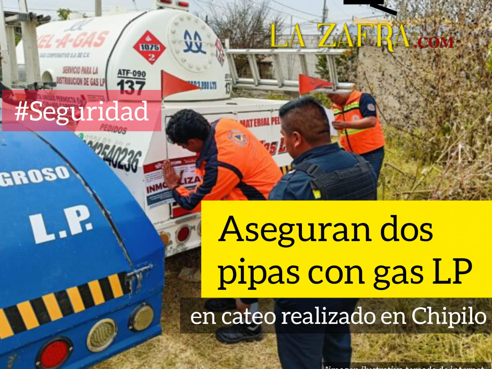 Aseguran dos pipas con gas LP en cateo realizado en Chipilo