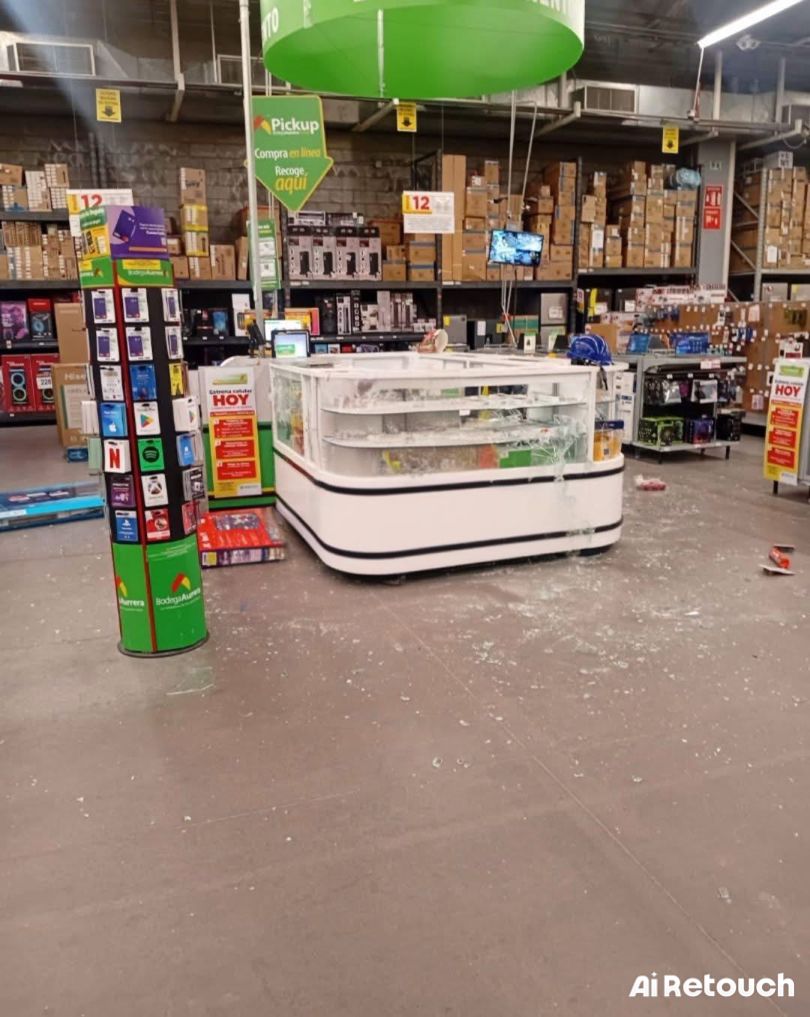 Los delincuentes ingresaron al supermercado poco antes de las 19:30 horas y, tras amagar a clientes y trabajadores, comenzaron a romper las vitrinas de la zona de telefonía celular. En cuestión de minutos se apoderaron de una importante cantidad de equipos móviles.