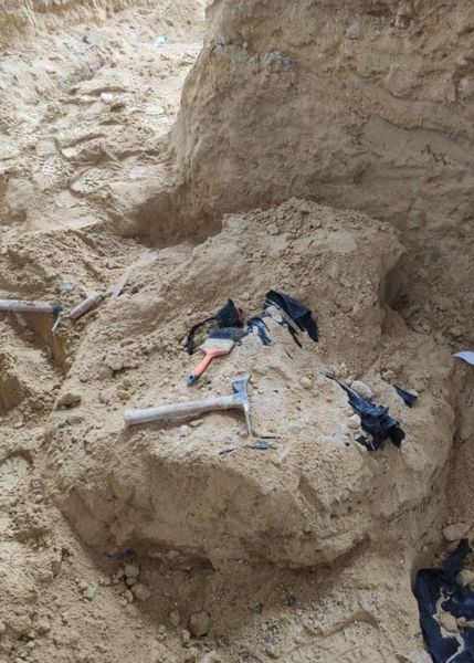 La retroexcavadora del panteonero topó con lo que creía era una raíz, pero al empujar saltaron decenas de fragmentos que parecían ser huesos de tamaño y peso considerable.